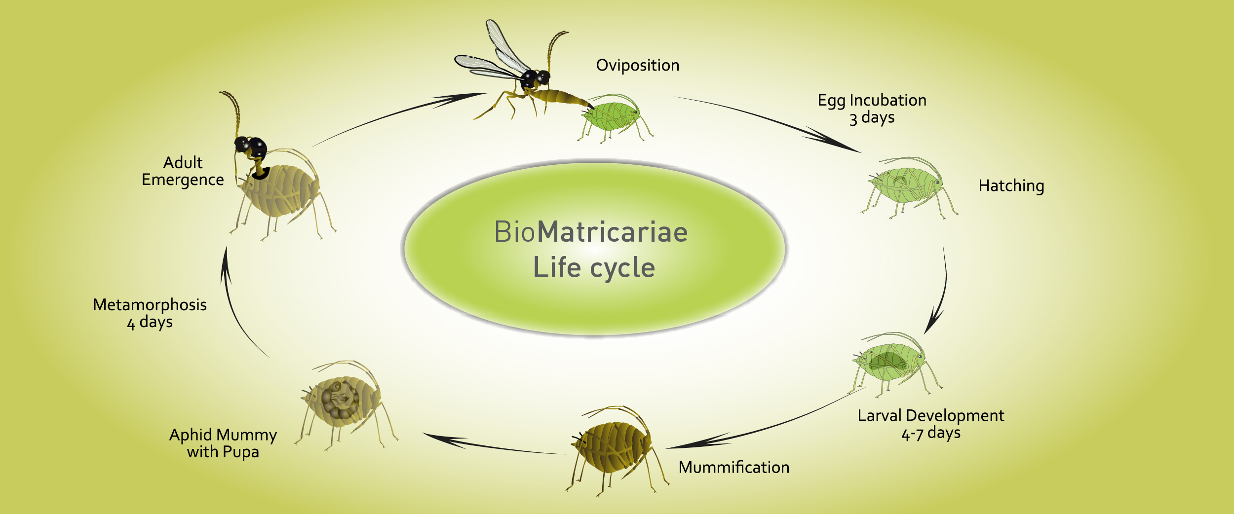 BioMatricariae (Aphidius matricariae) is a parasitic wasp, known to attack more than 40 aphid species in the family Aphididae.